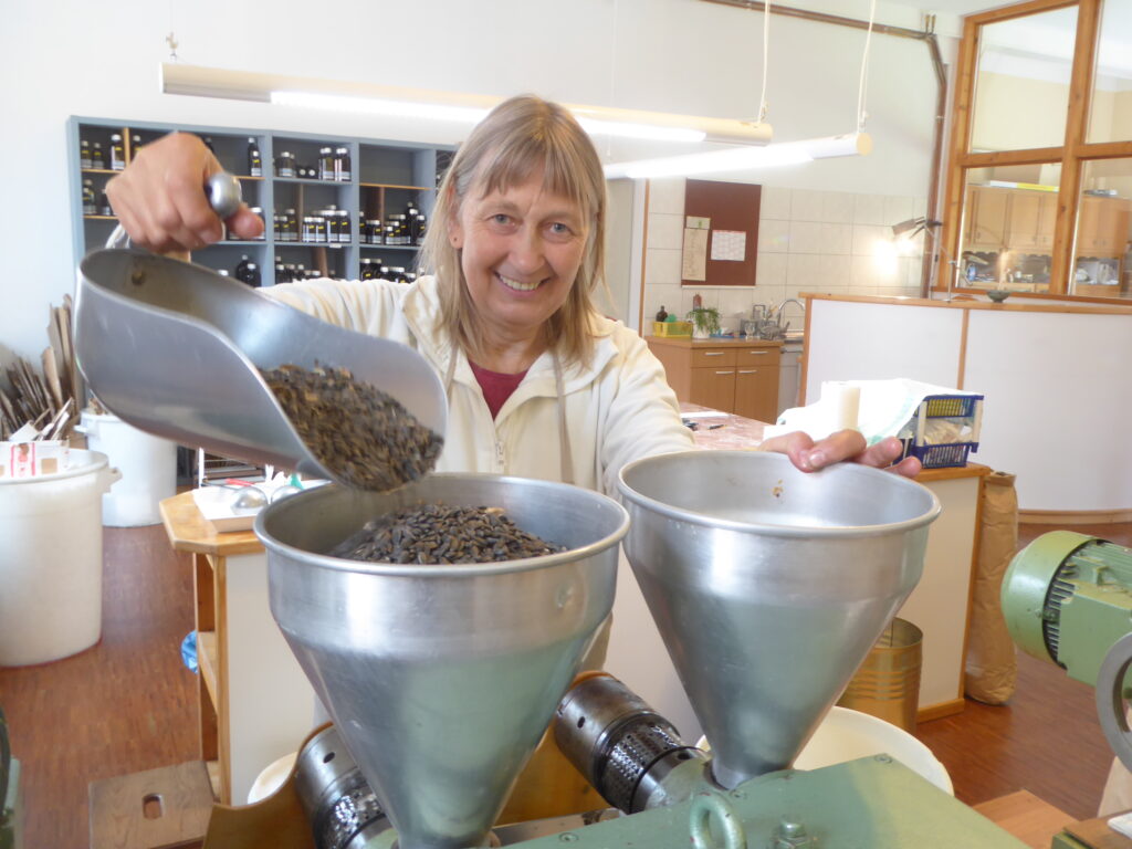 welches jeden Tag hergestellt wird. - Aber auch Sonnenblumenkerne (Foto) werden frisch gepresst.